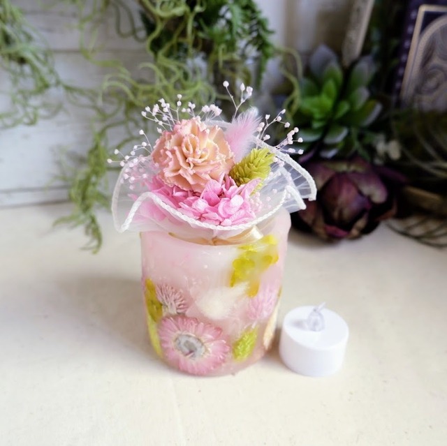 【期間限定・特別価格】 人気アイテムをお得に楽しめるセットを今だけさらにお求めやすくしました。 ギフトにも自分へのご褒美にもおすすめです。 ---------- ボタニカルキャンドルMLサイズ、ミニスワッグのセットです。ボックスに入れてお届けします。 キャンドルは秋冬限定「オスマンサス」の香り。甘く華やかな金木犀の香りです。 秋の訪れを告げるようにふわりと香る、甘く華やかな金木犀の香りはどこか懐かしく、心をやさしく包み込むような癒しを感じられます。 リラックスタイムやおやすみ前のひとときにおすすめの香りです。 ********** 金木犀の花言葉は「謙遜」「気高い人」「真実」「初恋」「陶酔」など。 ********** 名入れ等をご希望の場合はオプションからお選びください。(無料サービス) メッセージ内容等はコピー&ペーストで制作しますので、誤字・脱字などご注意ください。 ご質問等ございましたら、ご注文前にご連絡ください。 ~メッセージキャンドルをご希望の場合~ ①「メッセージ内容」【オプションからお選びください】 1.Happy Wedding 2.Happy Birthday 3.その他(「〇th Wedding Anniversary」などご希望のメッセージ内容を備考欄にご入力ください。25字位まで可能ですが、文字は小さくなります。) ②お名前【オプションから入力できます】 「Happy Wedding」などの場合→「DARLING&HONEY」のようにお二人分のお名前 「Happy Birthday」などの場合→お一人分のお名前 ※お名前はアルファベット大文字がおすすめです。 ③日付【オプションから入力できます】 「2025.03.10」のように西暦でお願いいたします。 【ボタニカルキャンドル】 燃焼部分にソイワックスを使用しています。ソイワックスはススや消した後の嫌な匂いも少なく、空気清浄効果があるといわれています。低温でゆっくり溶けるのでふんわりアロマが広がります。また、パラフィン製とはひと味違う優しい灯りもポイントです。 外側は燃焼しづらい加工をしてありますが、万が一ドライフラワーが溶けだしてきたら一旦火を消して割りばしなどで取り除いてください。 【スワッグ】 ドライフラワーやプリザーブドフラワーを使用しています。経年により退色などの変化がありますが変わりゆくさまもお楽しみください。 ※注意※ ・リボンが写真とは変更になる場合があります。 ・ 他サイトでも在庫を共有しているため、入れ違いで完売となる場合があります。先にご入金頂いた方優先となりますのでご了承ください。 ・プレゼントしたい方への直接発送も承っております。その際は納品書など金額が分かる物は同封致しませんのでご安心ください。また、直接発送の場合は紙袋はお付けしませんのでご了承ください。 ・直射日光が当たらない場所、高温多湿な場所を避けて使用、保管してください。変形・変色の原因になります。 ・ドライフラワーやプリザーブドフラワーは大変繊細な作りになっています。むやみに触ると破損の原因になりますのでご注意ください。 ※メッセージキャンドル注意※ ・フォント、デザイン変更はできません。バランスを見て調整させていただきます。 ・発送前に画像をお送りしますので、万が一メッセージの誤りがあればお知らせください。(メール送信後24時間以内に返信がない場合はそのまま発送させていただきますのでご了承ください) 4500円 ◆キャンドルMLサイズ:直径 約8cm、高さ 約12cm ・燃焼時間:約80時間(使用環境により異なります) ・使用花材:ジニア、マリーゴールド、あじさい等 ◆スワッグ:長さ 約18㎝ ・使用花材:ソラフラワー、ラグラス、カスミ草等