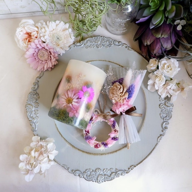 【春限定3点セット】 スイートピー ボタニカルキャンドルMLサイズ&サシェ&スワッグ