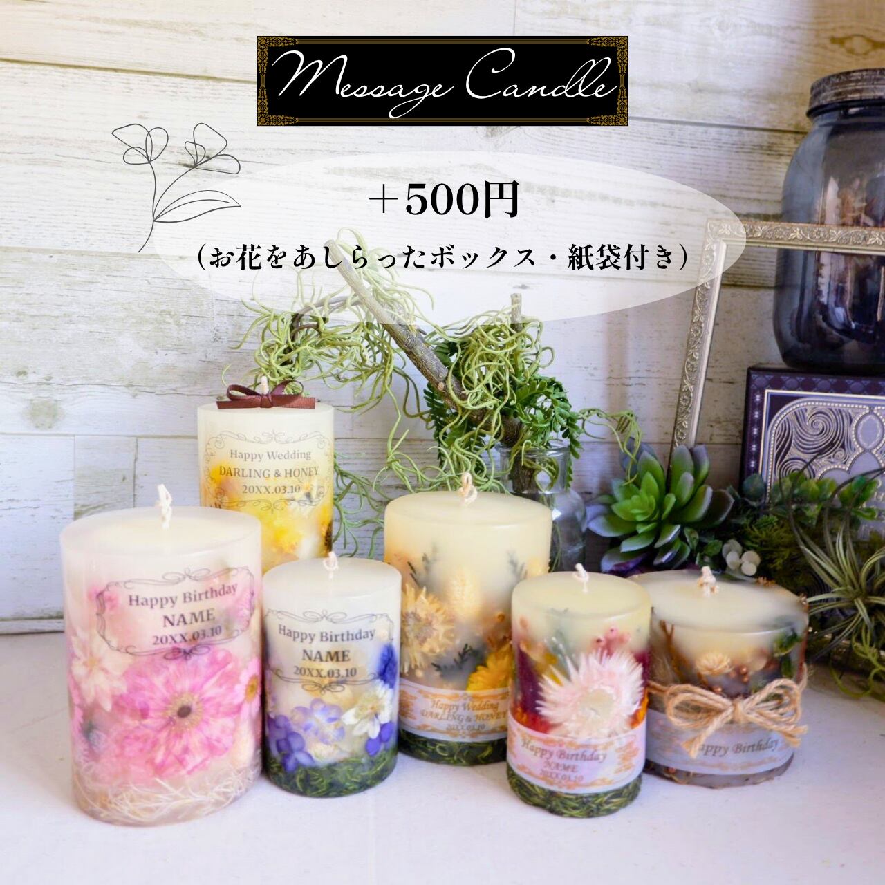 ・名入れ等をご希望の場合はキャンドルと一緒に別ページにある「名入れ メッセージキャンドル」をカートに入れてください。