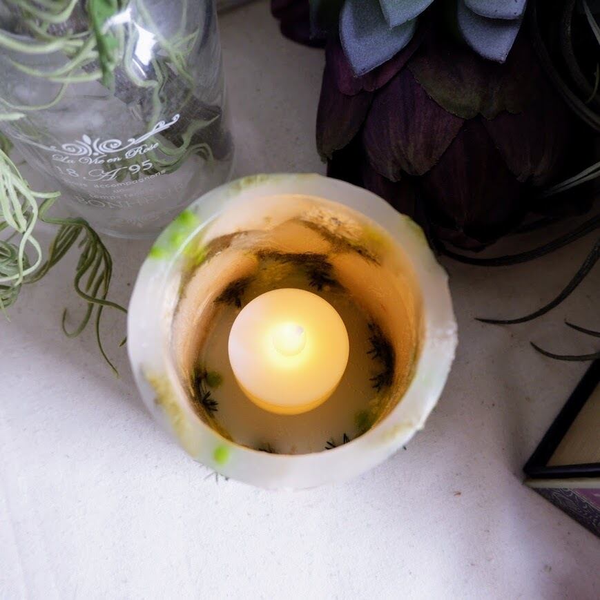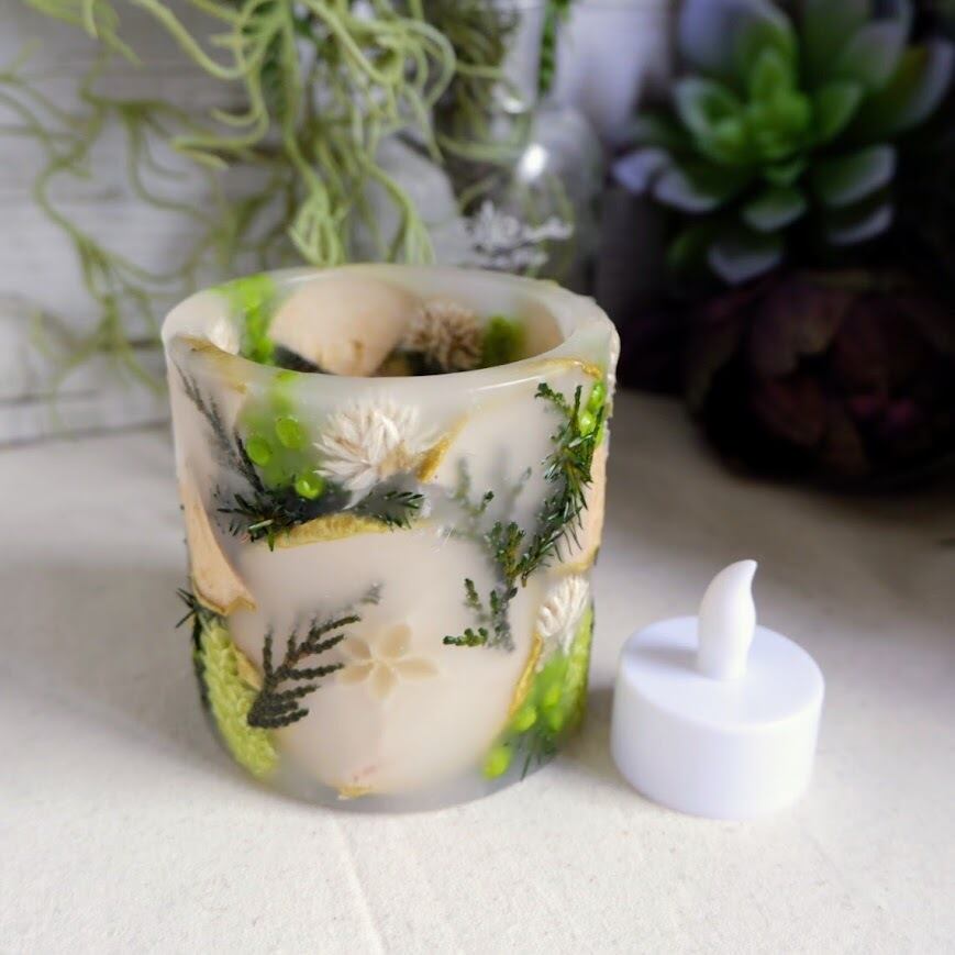 炎のようにゆらゆらと光が揺れるので本物のボタニカルキャンドルと同じように楽しんでいただけます。