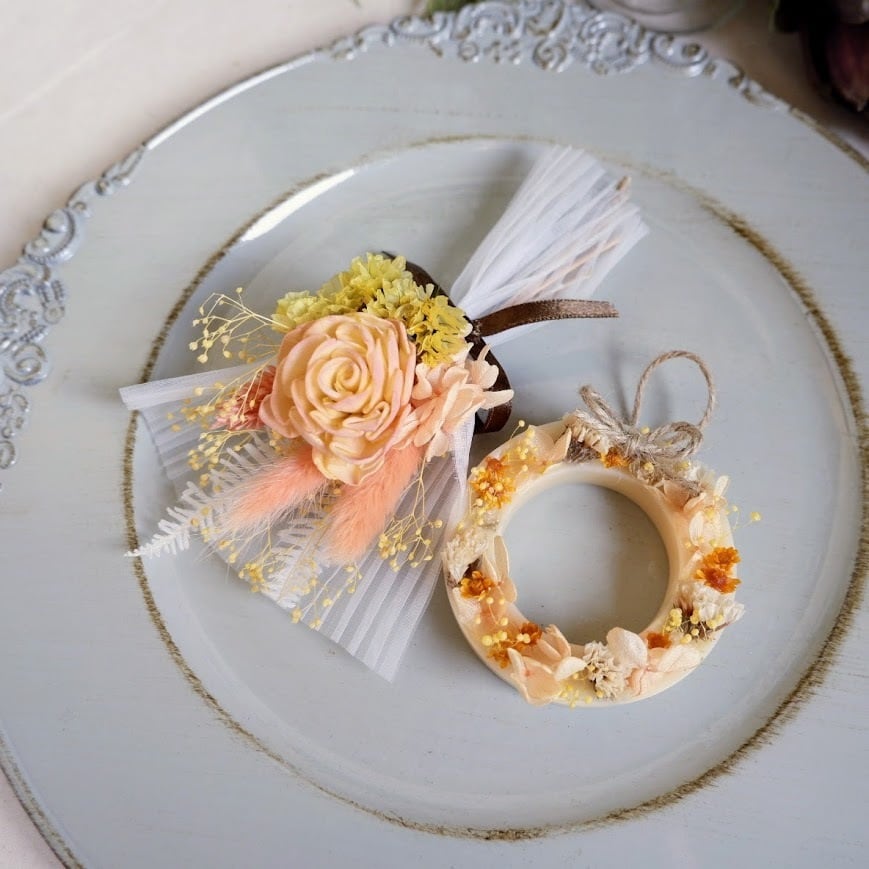 ドライフラワーやプリザーブドフラワーを使用しています。