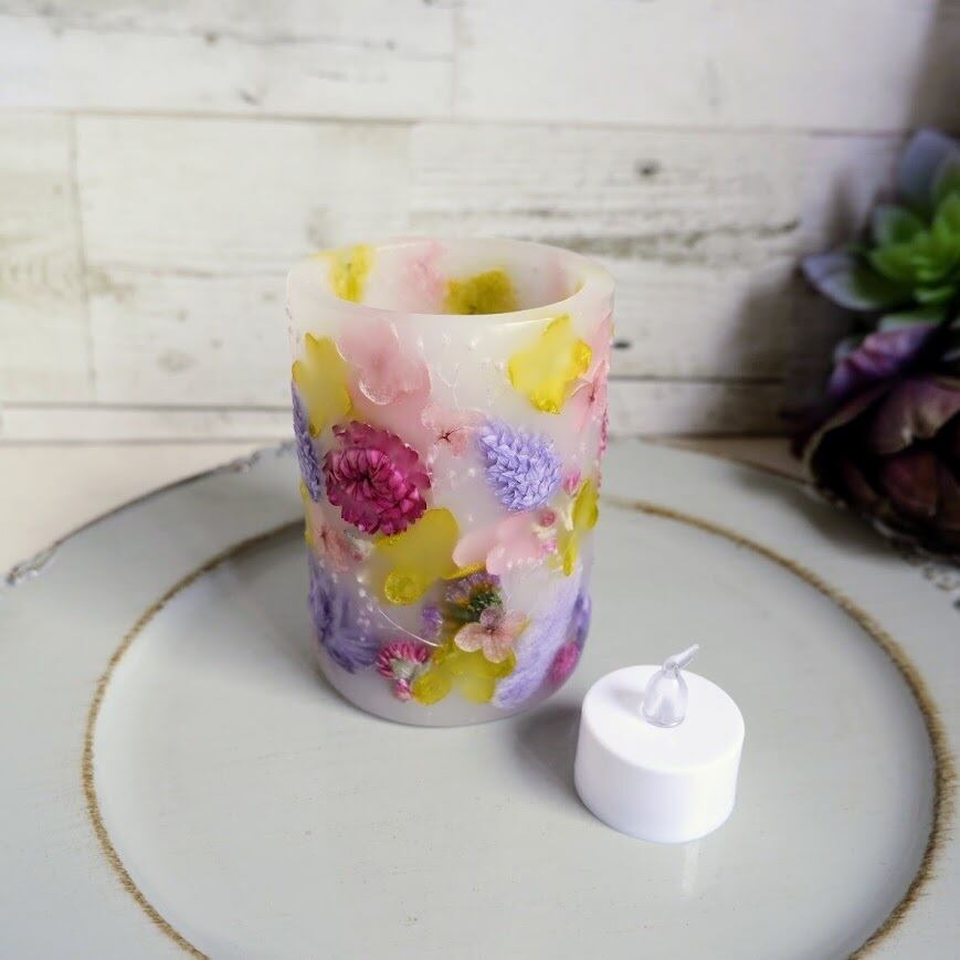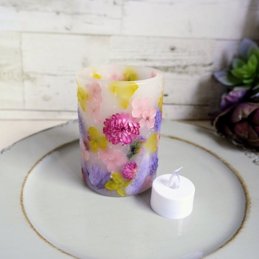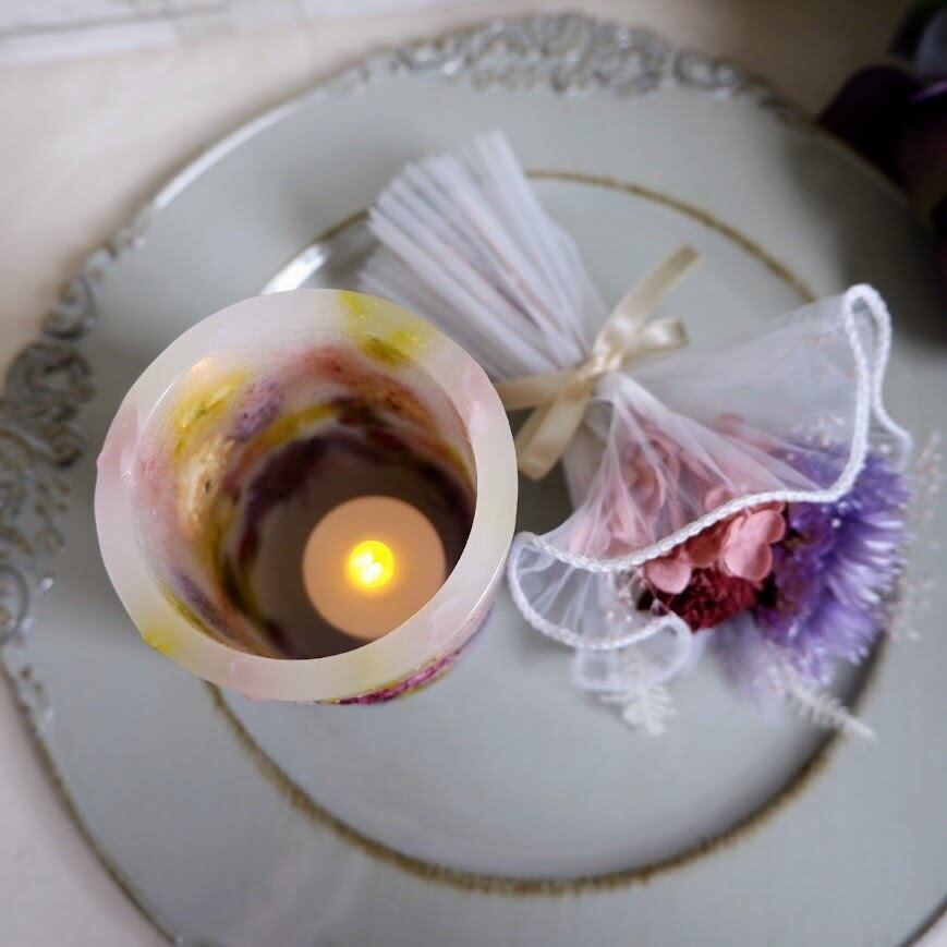 付属のLEDティーライトは火を使わないため、お子様やペットがいるご家庭でも安心してご使用いただけます。炎のようにゆらゆらと揺れる灯りが、本物のボタニカルキャンドルのようなあたたかな雰囲気を演出します。