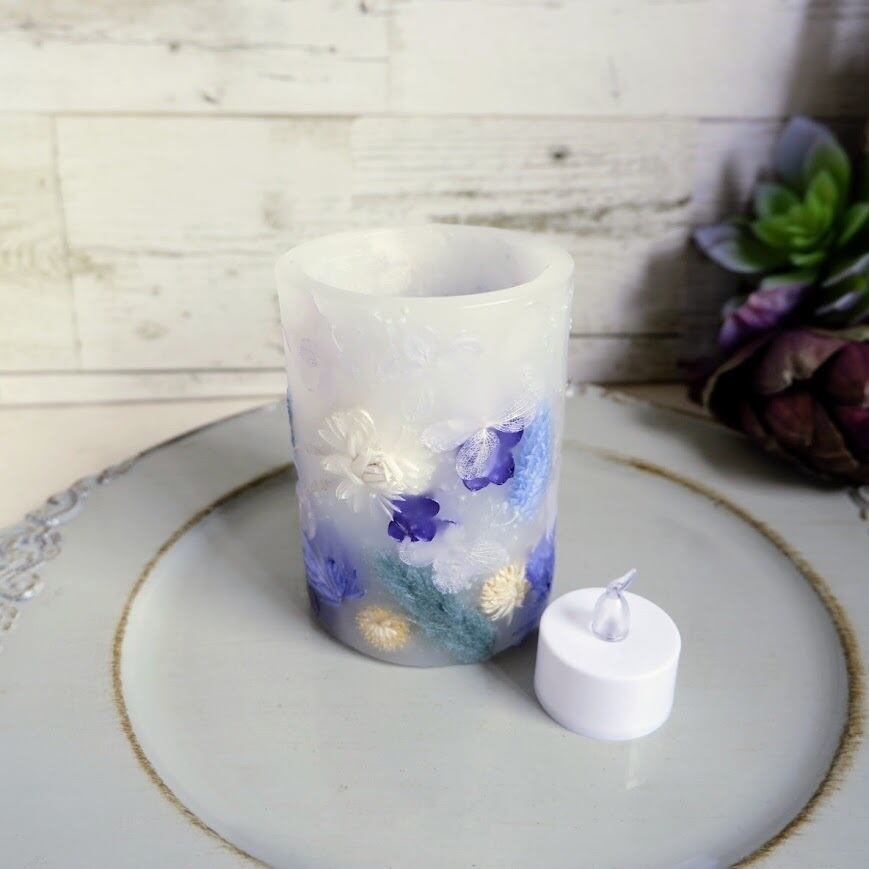 付属のLEDティーライトは火を使わないため、お子様やペットがいるご家庭でも安心してご使用いただけます。炎のようにゆらゆらと揺れる灯りが、本物のボタニカルキャンドルのようなあたたかな雰囲気を演出します。