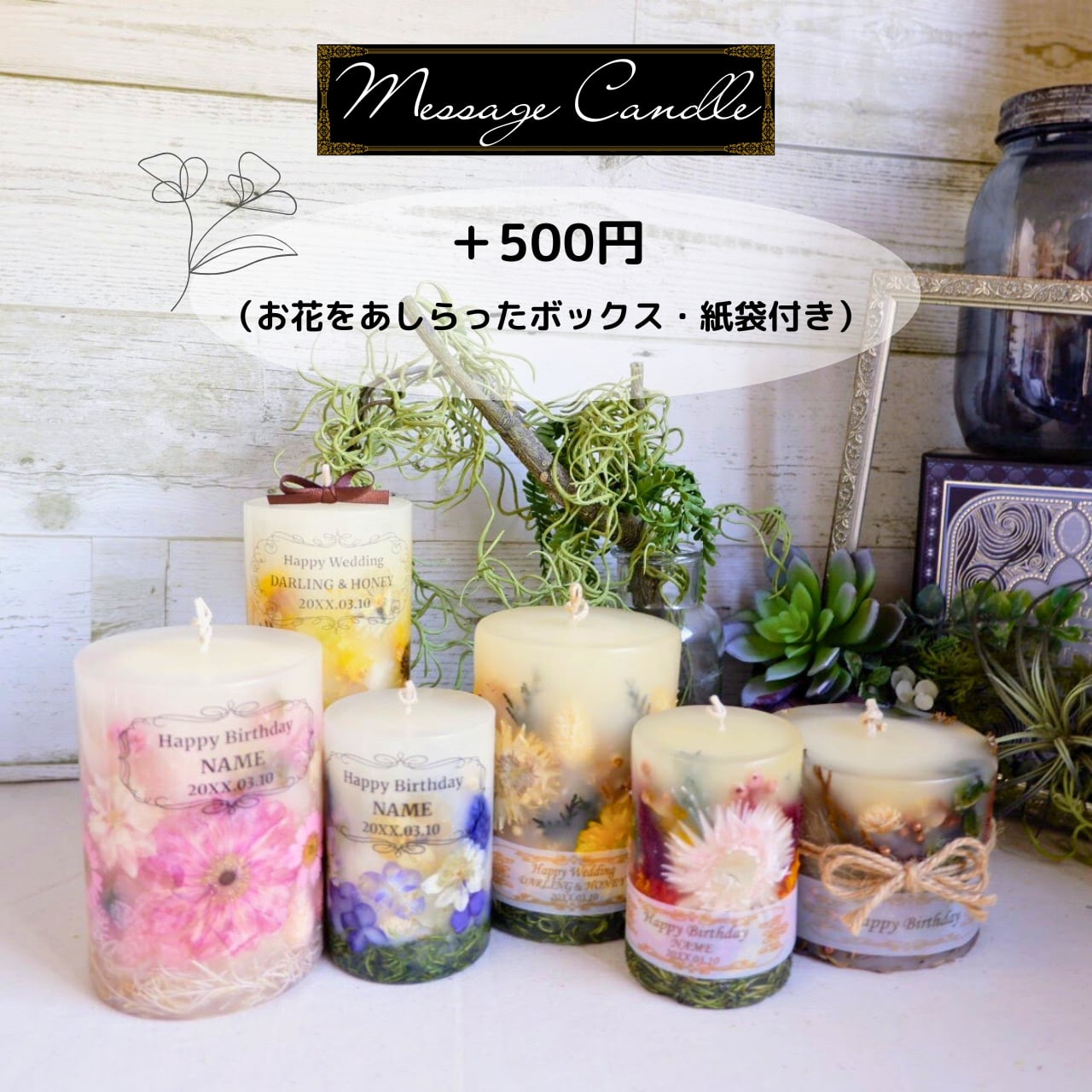 ・名入れ等をご希望の場合はキャンドルと一緒に別ページにある「名入れ メッセージキャンドル」をカートに入れてください。