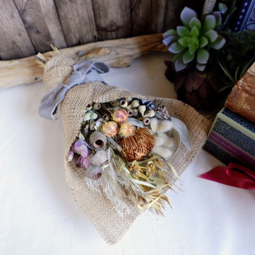 実物やドライフラワー、プリザーブドフラワーを束ねたSサイズのスワッグです。