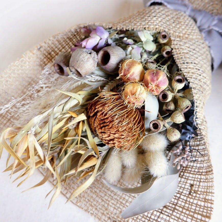 ・使用花材:リューカデンドロン、ピンクッション、フーセンポピー等