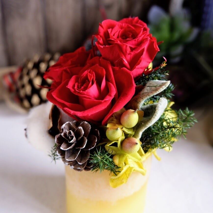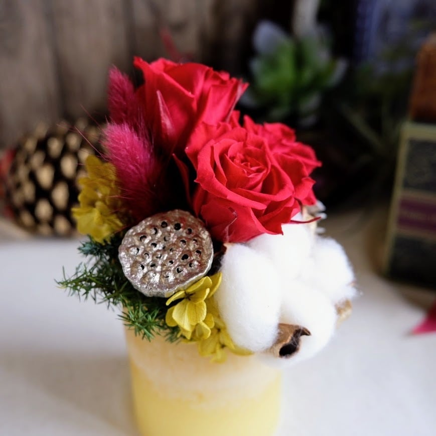 【秋冬限定】プリザーブドフラワー LEDライトワックスベース *Red*