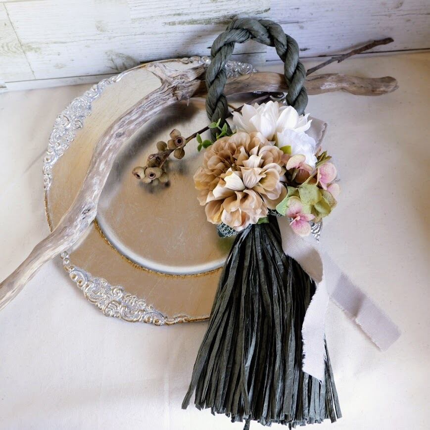 おしゃれで大人っぽい、落ち着いた色合いの正月飾りです。