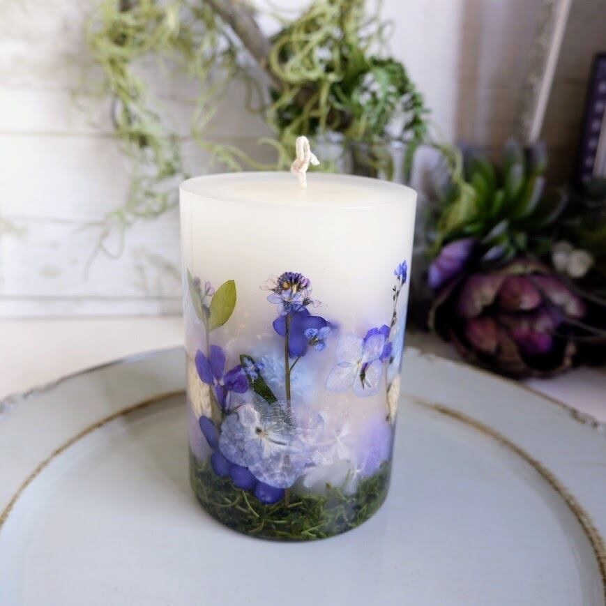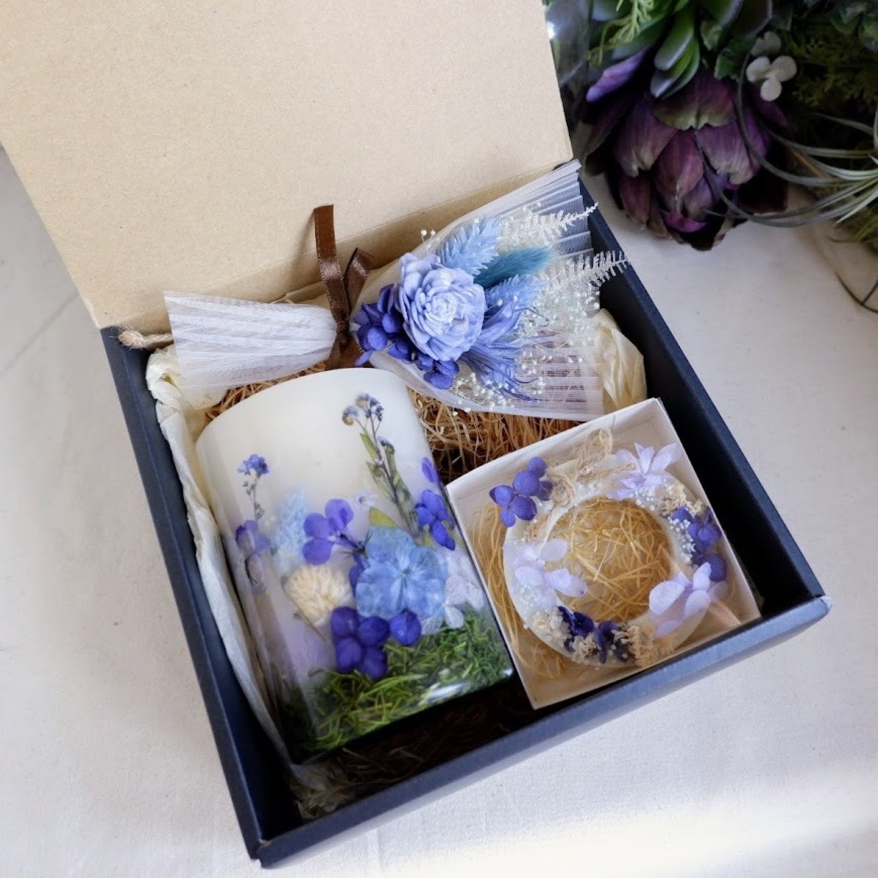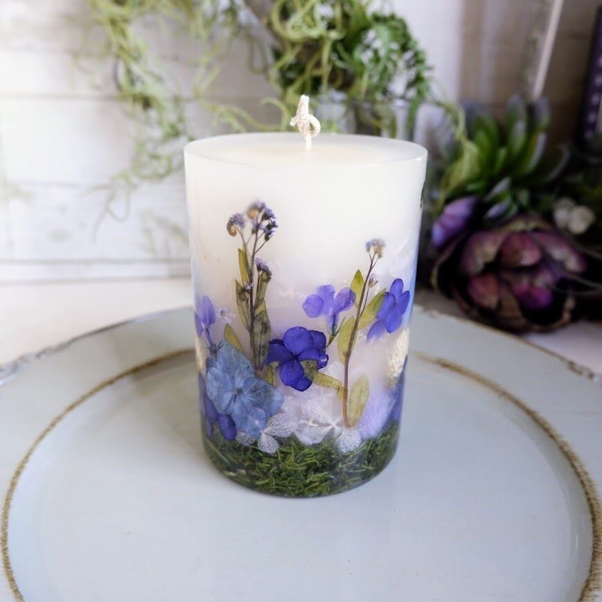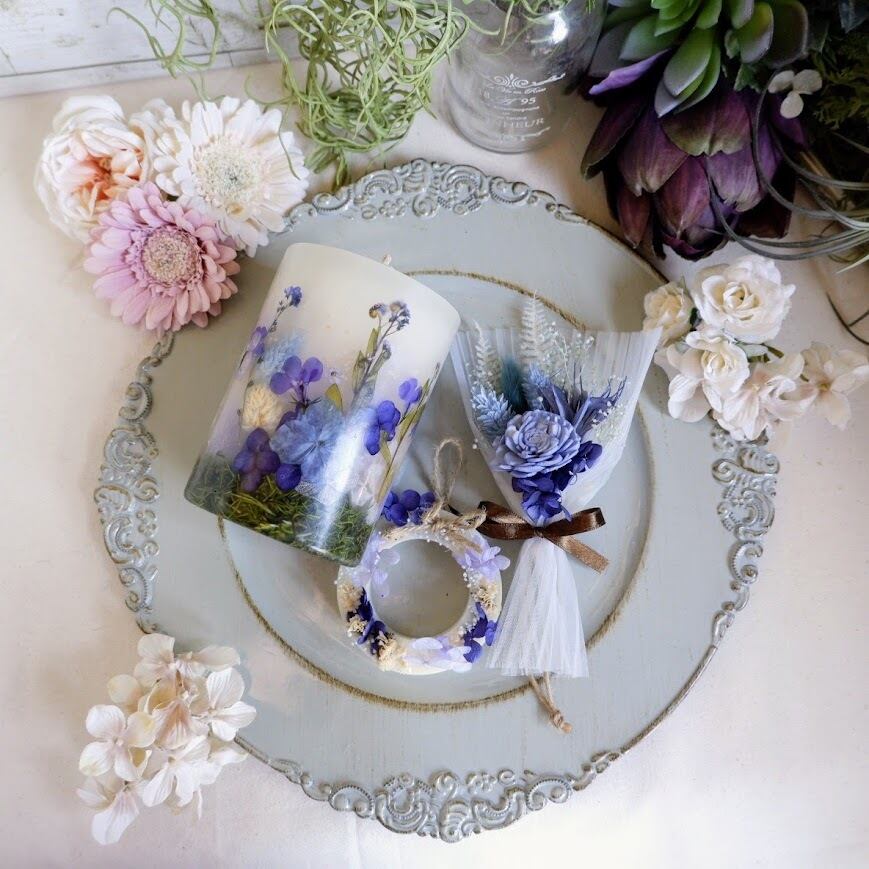 【春限定3点セット】 忘れな草 ボタニカルキャンドルMLサイズ&サシェ&スワッグ