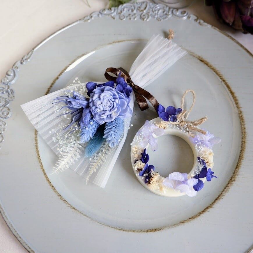 ドライフラワーやプリザーブドフラワーを使用しています。