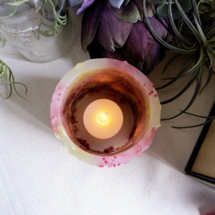 ・熱に弱いので、本物のティーライトキャンドルを使用しないでください。(底が抜けたり、周りが溶けてしまいます)